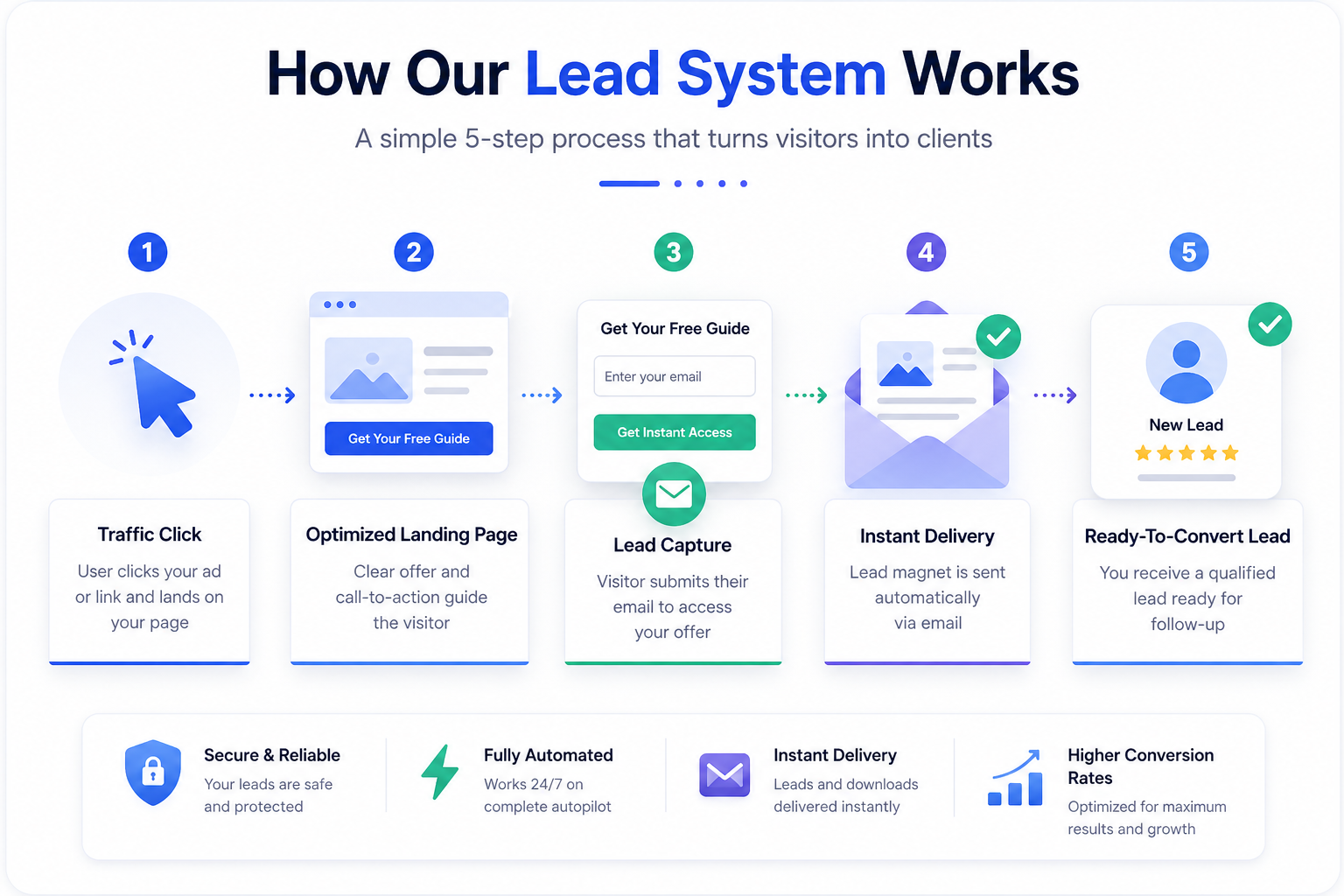 A complete lead generation system: landing page, lead magnet, and automated email delivery.